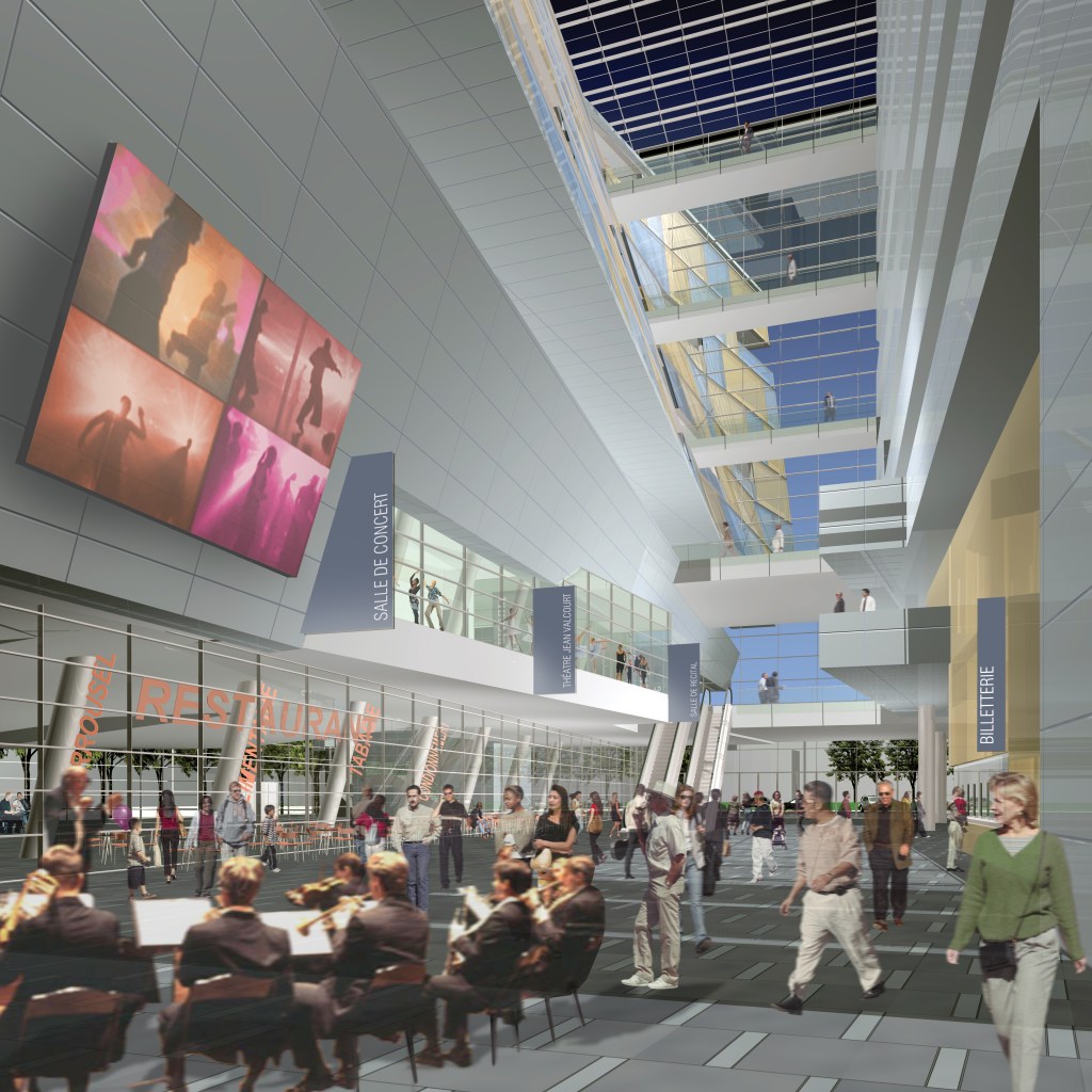 - Montreal Symphony Orchestra Hall, including a 1900 seat concert hall and a stage accommodating 120 musicians and a choir of 246, specially designed practice halls, offices, and public spaces (reception, ticket office, etc.).