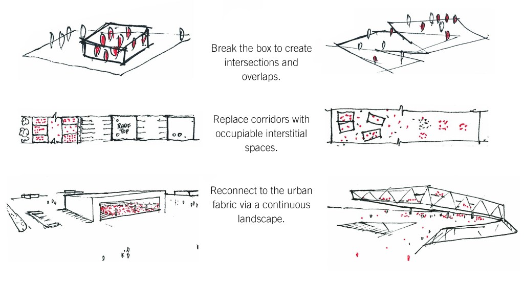 As these studies proceeded, however, the site itself remained in flux. Detailed site studies provided the team with new constraints while necessary infrastructural improvements impacted the site in a number of ways: