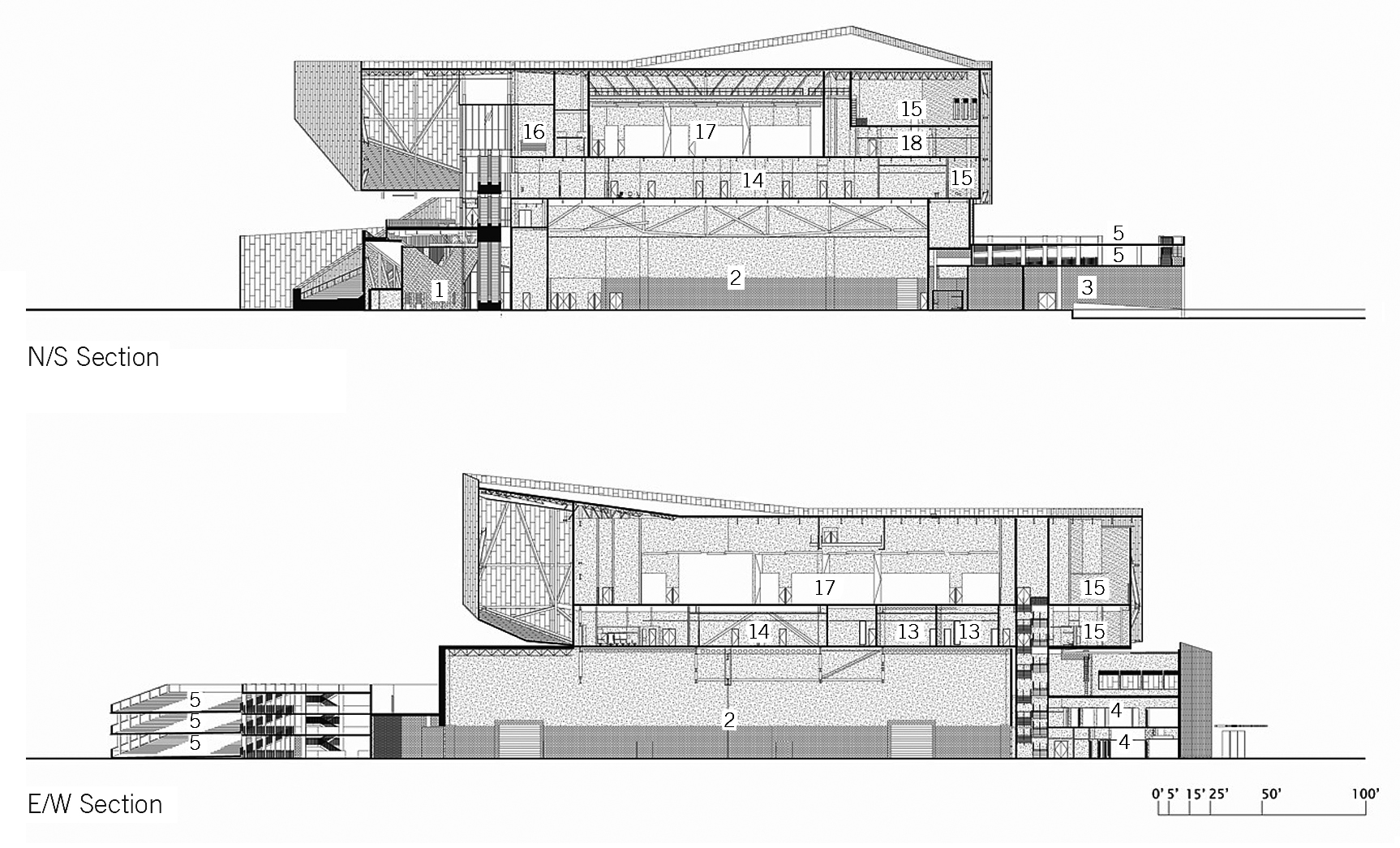 - The garage shades the loading docks and truck bays, which allows for reduced heating and cooling requirements in the facility’s large exhibit hall space on event installation days.