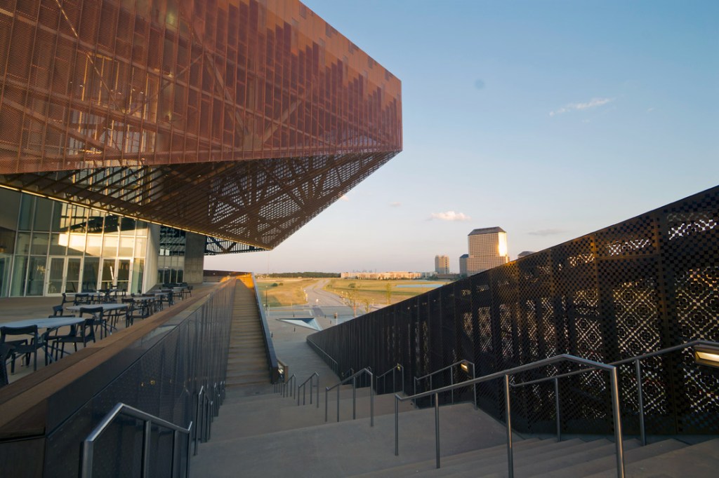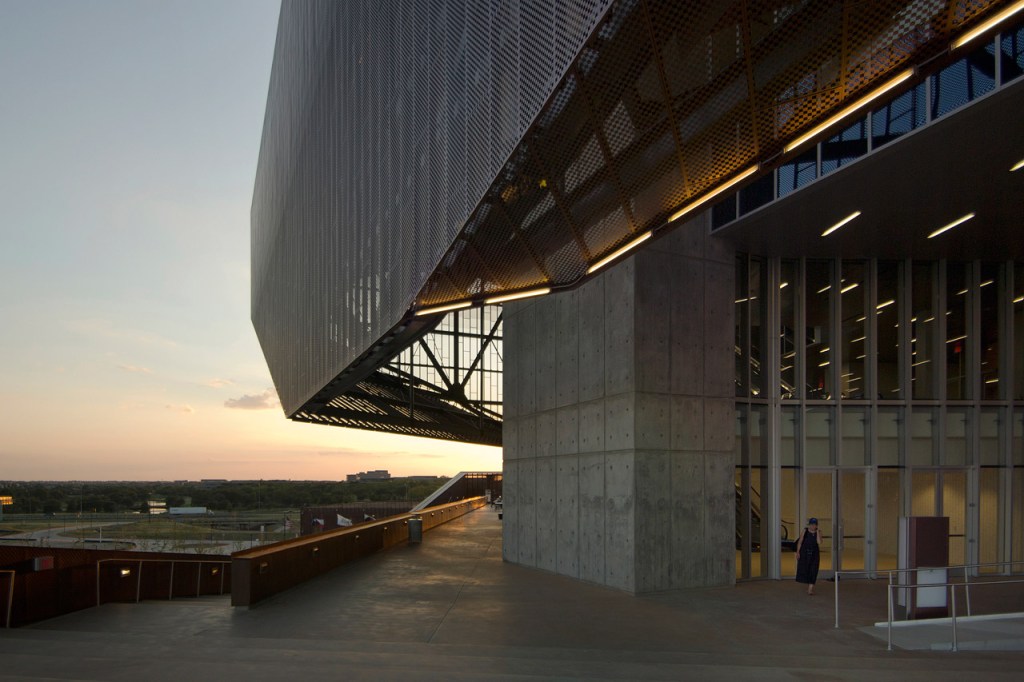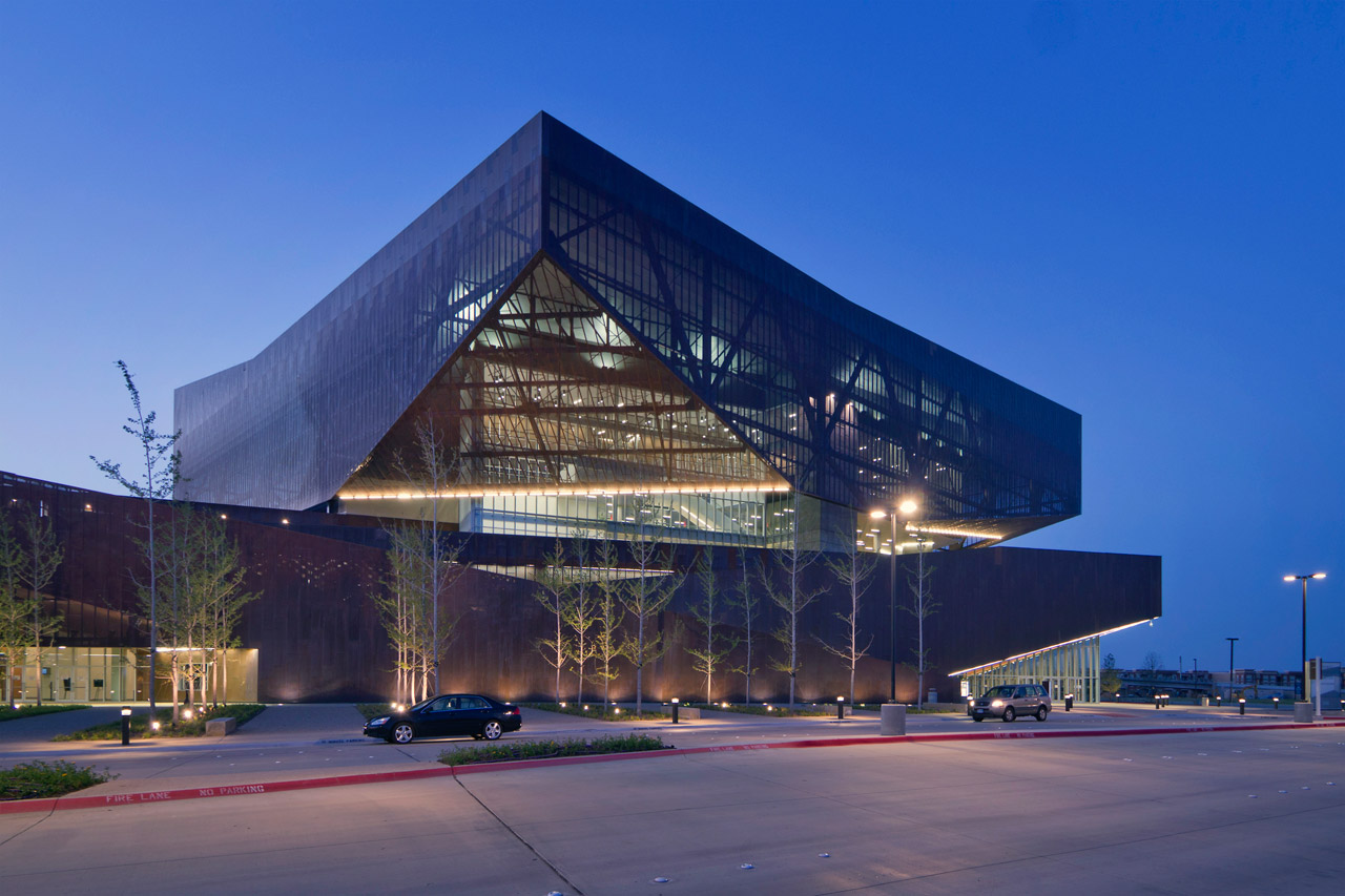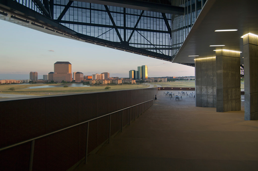 - The trusses of the 4000-ton steel structure were designed to be sourced domestically. Much of the steel came from recycled sources nearby in North Texas and Oklahoma.