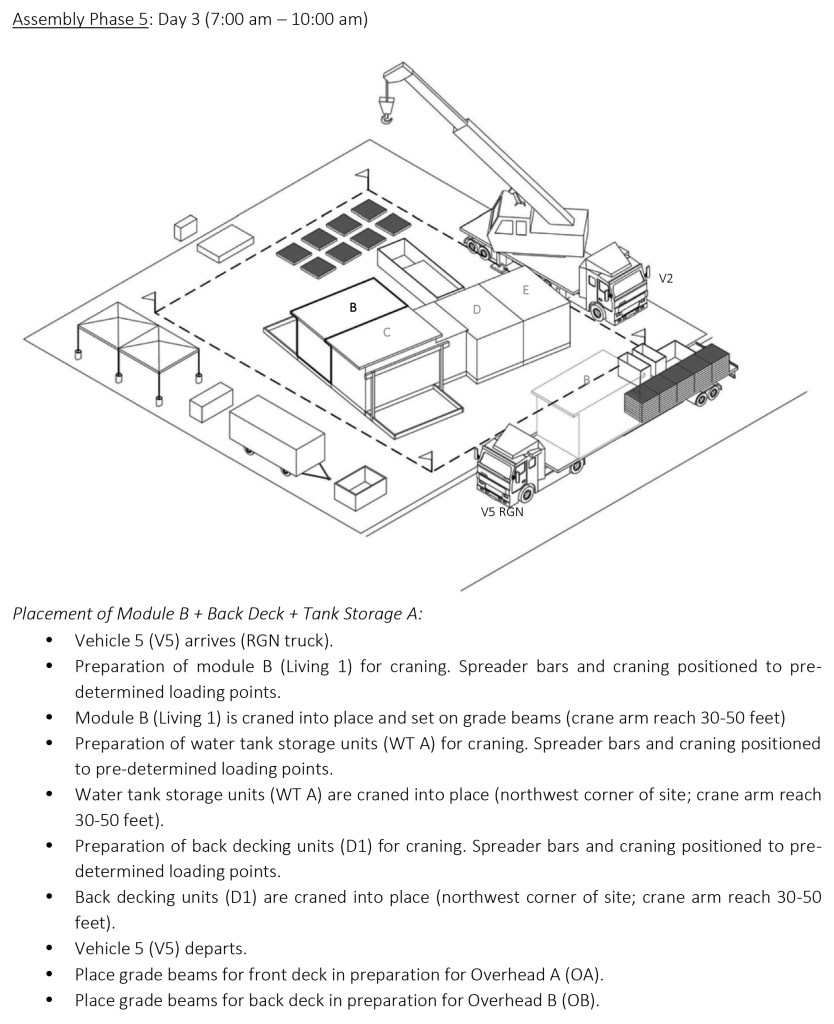 The house is designed as a series of five modules, including one that is designated as the “wet core.” The wet core consolidates the mechanical systems and bathroom into a single module to reduce plumbing runs, efficiency losses, and on-site construction time. The other four modules are designed to eliminate interior load bearing walls to allow for maximum flexibility in the reconfiguring of the space over time. The modules are designed to meet the structural challenges of both Florida’s hurricanes and California’s earthquakes.
