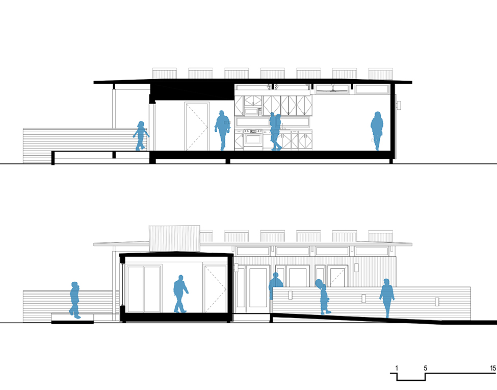 Inspired by mid-century modern homes and the Case Study House program, the Solar Living House is a two-bedroom home designed to embrace and frame an exterior courtyard space. Our goal is to create an elegant and disciplined house that expresses its construction in an honest and direct manner; a house that basks in the sun and harnesses the full extent of the energy it affords; a house that reflects the poetic delight of a bygone era, updated and transformed through the technological prowess of our time. We will offer a house that is at once new, yet familiar. We are looking back in order to look forward, synthesizing the clean lines, efficient spaces and material palettes of mid-century modern homes with the efficacy of new envelope strategies, energy-production systems, and novel solar-powered dehumidification systems.