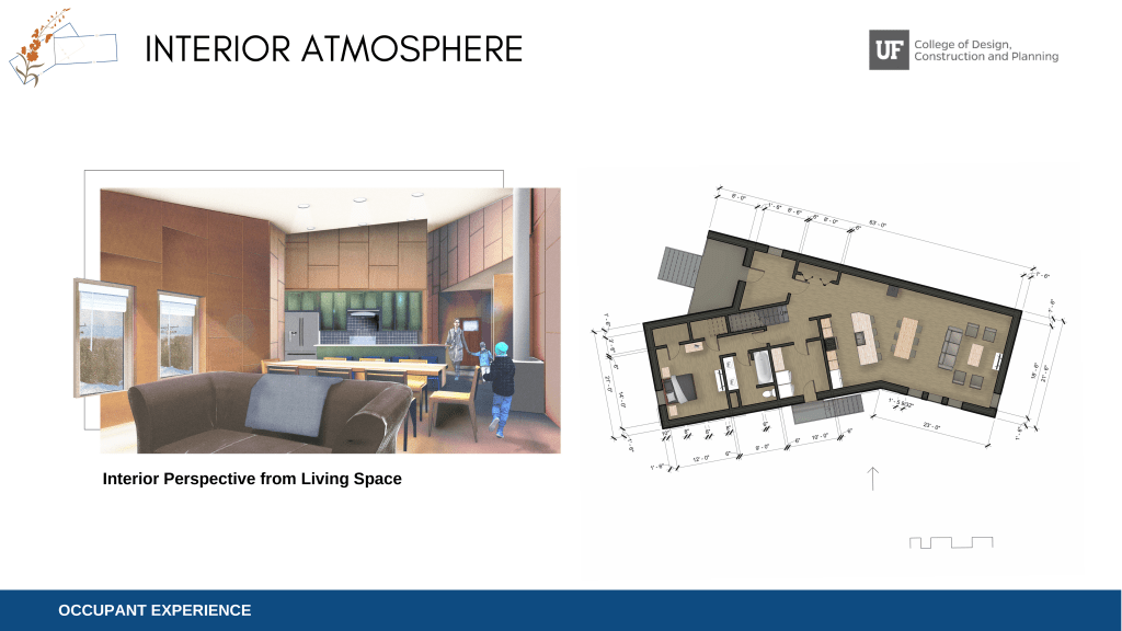 The proposal aims to enhance indoor air quality through moisture management and reduced air infiltration in the envelope. Ventilation is provided by a mechanical heat recovery ventilator. The materials are non-toxic and natural daylighting strategies are utilized. While the windows will cause heat loss, they have been strategically placed on the home’s south facing elevation to provide natural light for occupant comfort. Orientation of the home takes advantage of sun angles throughout the seasons to maximize light and minimize heat loss.