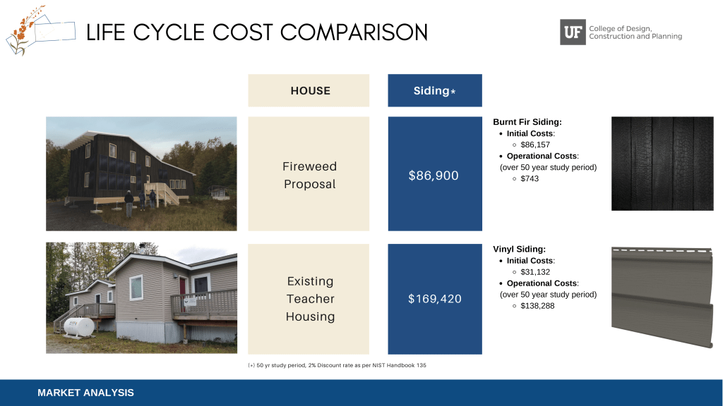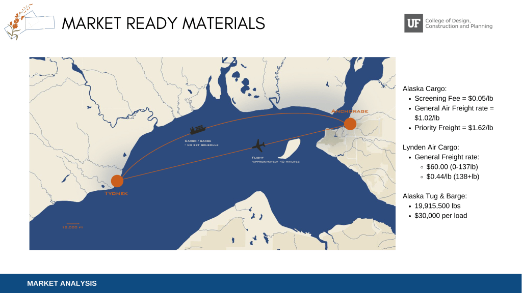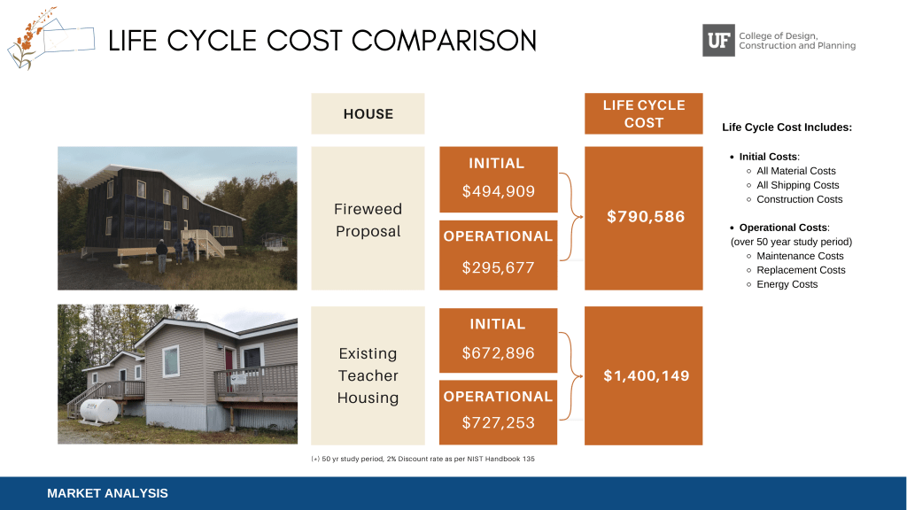 The predominant ethnicity in this location are those of Native Alaskan descent, with the typical age demographic being those of working age or older. The Tribal Council has requested that the design consider aging in place to keep the community close. The median household income in Tyonek is $38,125 (2020 dollars, per the US Census Bureau). Construction costs work out to $353/sf, accounting for shipping materials from Anchorage. Our proposal uses a combination of prefabricated off-site construction (for wood truss components) and on-site construction to maximize quality and construction efficiency while reducing cost. We will seek federal funding and support from our industry partners for housing and energy generation.