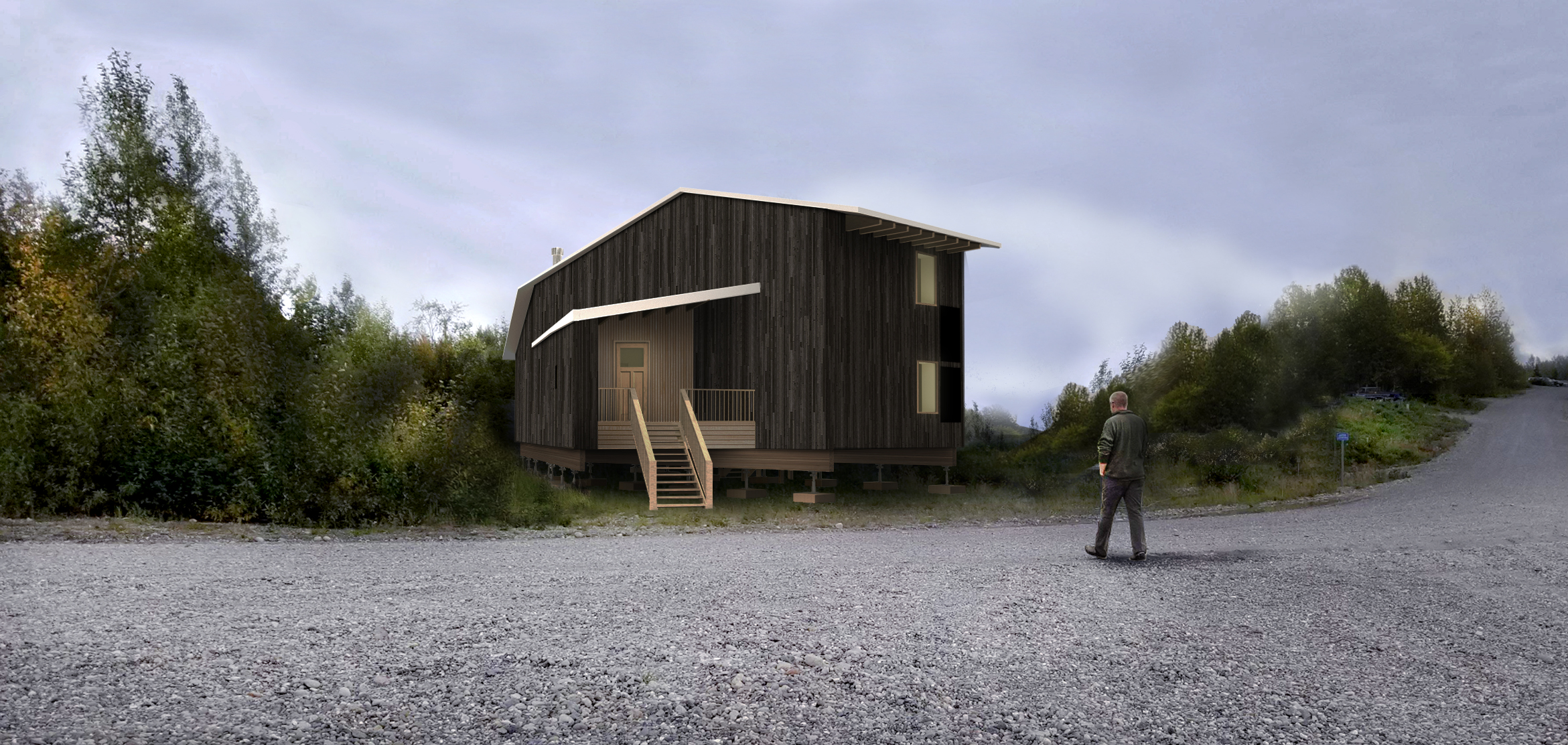 Inspired by the resilience and tenacity of the common fireweed (Chamerion angustifolium), this house is intended to be built quickly on-site with common building materials. The house uses light wood trusses for the elevated fl oor, exterior walls, and roof. These trusses provide an economical method for creating a well-insulated building envelope. Designed for its arctic environment, the house lifts above the cold ground. It incorporates vertical wall-mounted photovoltaic panels, an energy recovery ventilator, and a dedicated fresh-air system. A small wood stove provides critical backup heating and supplements the highly efficient air source heat pump.