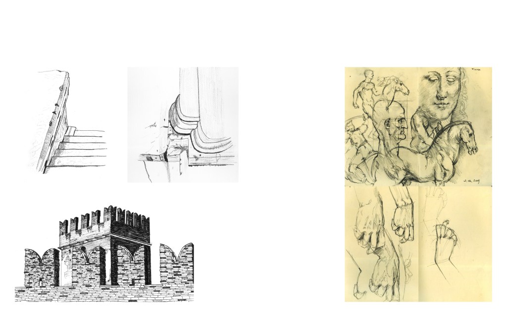Following each weekend of self-directed travel and/or time in Vicenza, students are expected to bring original drawings and/or photocopies of selected independent drawing work for review and discussion during the beginning of Monday morning’s class. On faculty-led travel (to Venezia, Padova, Verona, Roma, etc.), students are required to draw as one component of the travel, for review during the trip and upon return to Vicenza. Students are also be expected to draw during class time, as instructed.